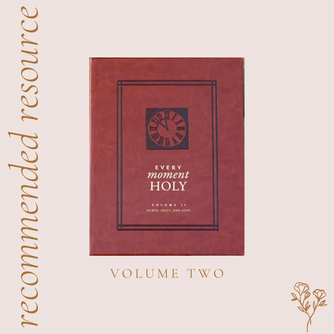 Our resource for you this week is Every Moment Holy Volume 2: Death, Grief, Hope put out by The Rabbit Room Press. I’m not sure if you’ve grown up in a liturgical faith tradition (I didn’t really!), but I have come to really cherish liturgy as I’ve walked through seasons of deep grief. Sometimes I struggle to know what to pray. Liturgies are written prayers meant to be prayed corporately or individually. These prayers help focus my mind and heart when the words just aren’t coming.